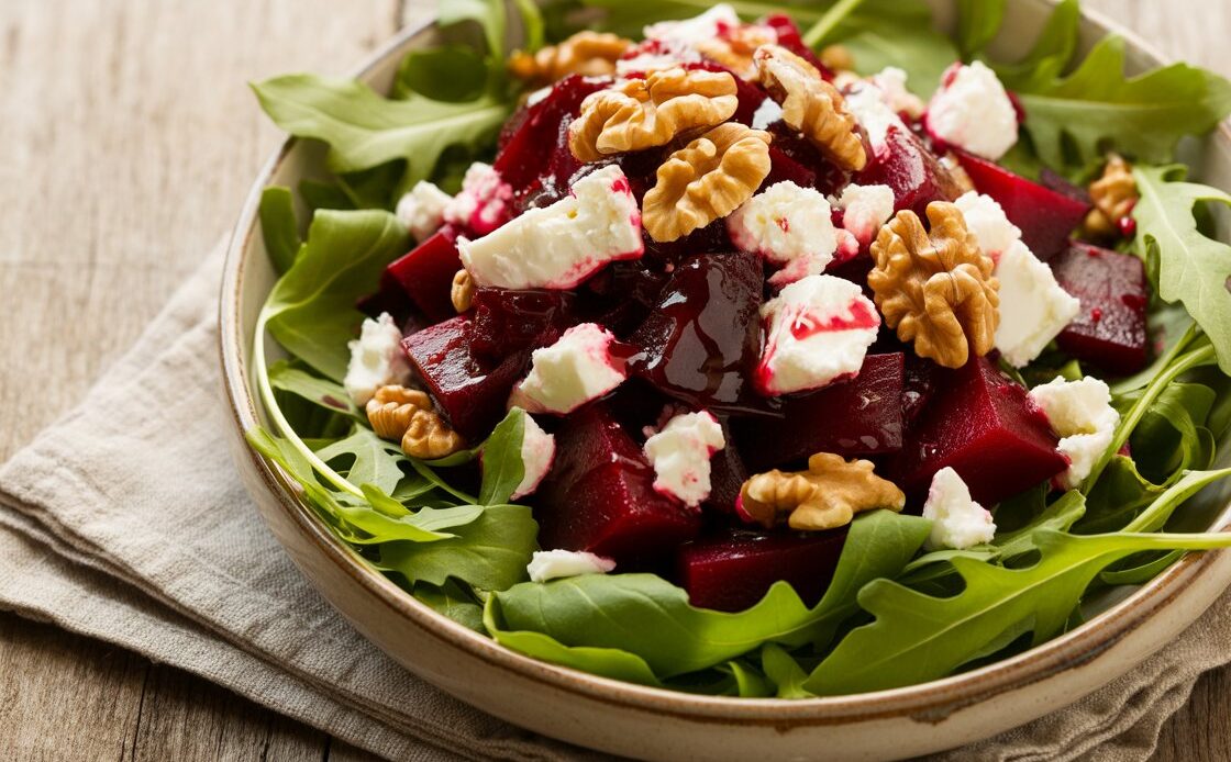 Rooted in Mediterranean cuisine, this beet salad recipe borrows the region’s hallmark ingredients—feta cheese, walnuts, and olive oil—to deliver a wholesome dish that honors tradition while adding its own flair. The rich, nutty flavor of walnuts and the sharpness of feta blend seamlessly with the natural sweetness of beets. A drizzle of high-quality extra virgin olive oil ties the flavors together while adding healthy fats. This salad captures the essence of Mediterranean eating: simple, fresh ingredients combined to create something greater than the sum of its parts.