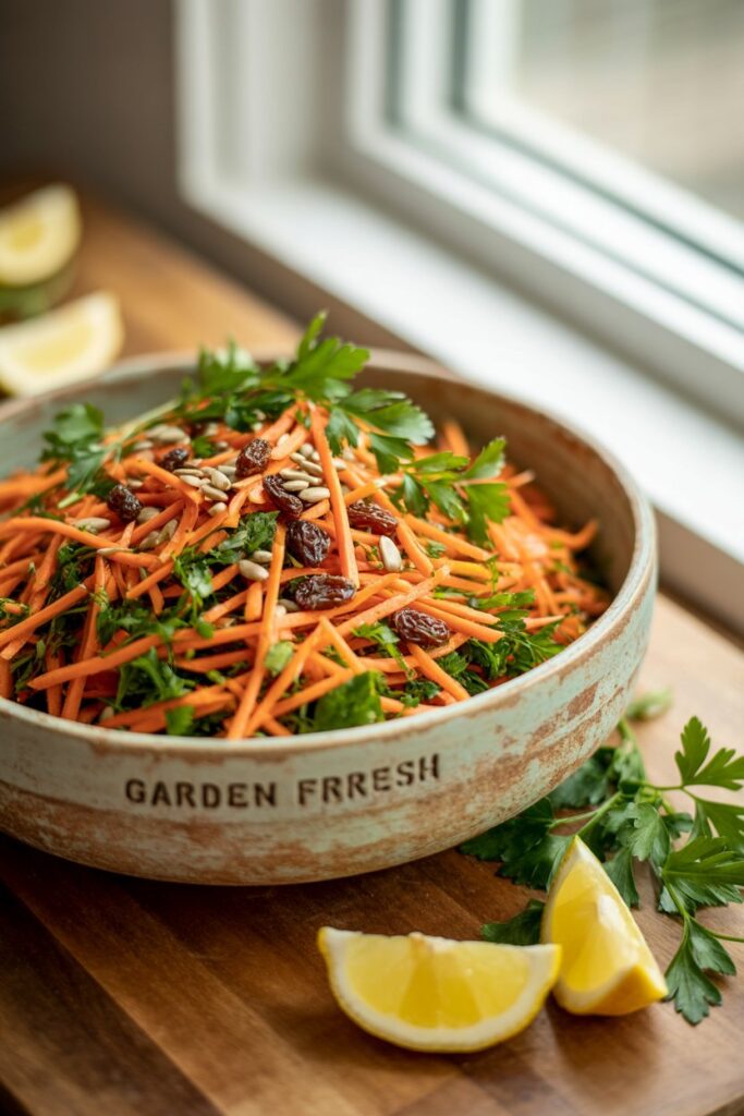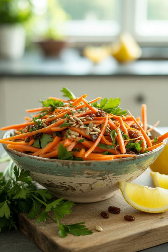 This crunchy carrot salad combines fresh shredded carrots with a tangy dressing, making it a perfect light snack or side dish packed with vitamins and flavor.