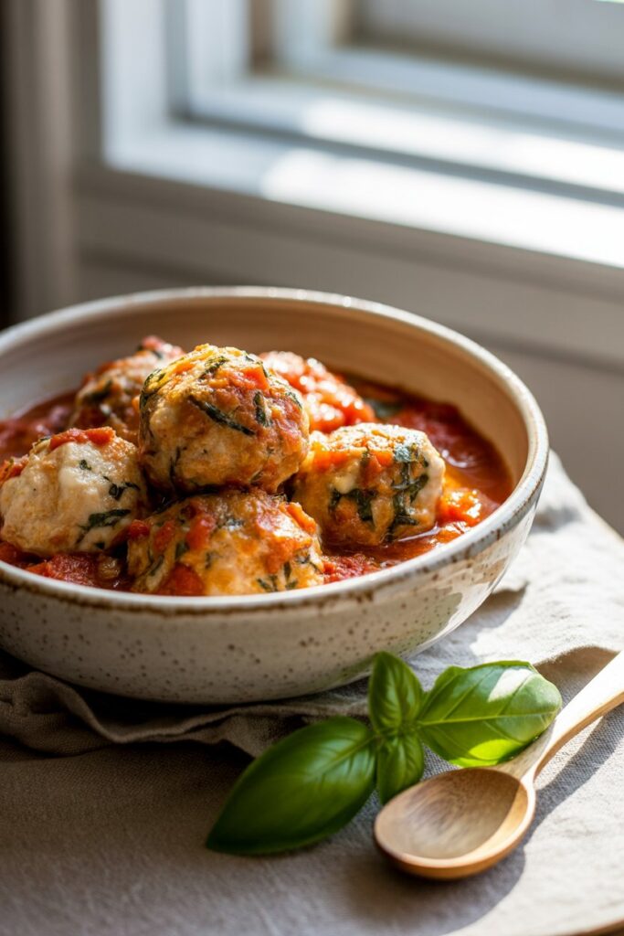To maximize convenience, chicken ricotta meatballs are excellent for meal prep. After cooking, allow them to cool completely before storing in an airtight container. They keep well in the fridge for up to 4 days and freeze beautifully for up to 3 months. When reheating, bake them in the oven at 350°F (175°C) for 10–15 minutes or warm gently in a skillet to preserve moisture and texture.