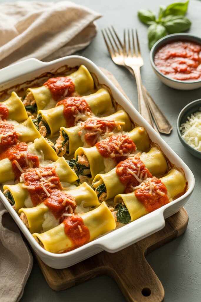 Chicken and spinach manicotti offers a wonderful balance of lean protein and nutrient-rich greens. Chicken provides high-quality protein that helps keep you full and supports muscle health. Spinach adds important vitamins like A, C, and K, plus minerals such as iron and calcium. This combination not only tastes great but also turns a pasta dish into a more wholesome meal. By pairing the savory chicken with tender spinach, you get a filling and satisfying dinner that still feels light and nourishing. It’s the ideal way to enjoy comfort food while sneaking in extra veggies.