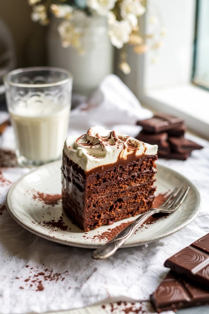 Moisture Tips: The longer you let the cake soak, the richer and moister it will be. Just be cautious not to over-soak, as it can become too soggy.   Flavor Variations: Feel free to experiment with different types of chocolate in the cake or soaking mixture, such as dark chocolate or milk chocolate, to adjust the sweetness and richness to your preference.   Storage: Leftover cake can be stored in an airtight container in the refrigerator for up to 3-4 days. The cake will continue to absorb the milk mixture, making it even more flavorful over time.