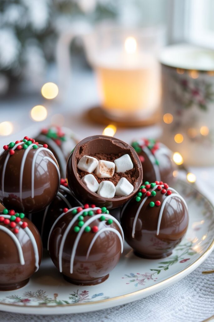 Holiday-themed bombs are always a hit. For Christmas, try using red and green sprinkles, candy cane pieces, or spiced cocoa mixes. Valentine’s Day calls for heart-shaped molds, strawberry cocoa, and pink marshmallows. Around Halloween, black cocoa, spooky edible eyes, or pumpkin spice fillings can add a fun, thematic twist.