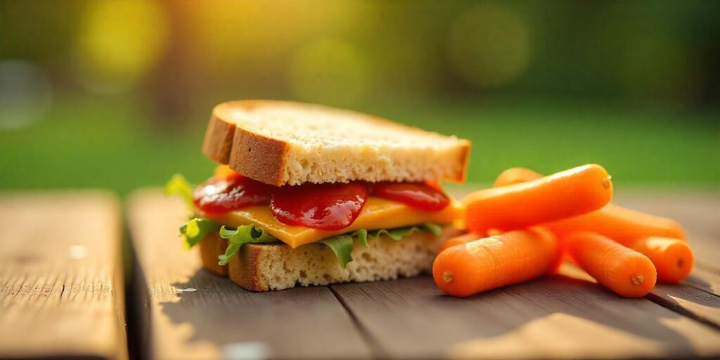 - Peanut butter & jelly sandwich with carrot sticks: A timeless and cheap option, peanut butter is packed with protein, and carrots provide a healthy crunch.