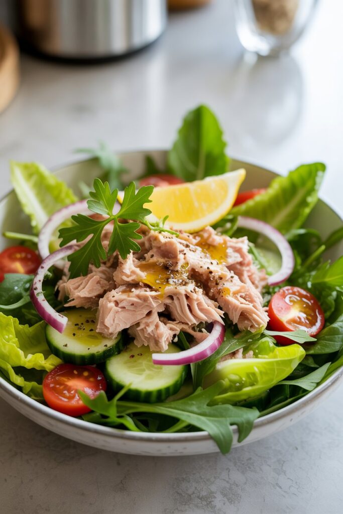 • Simple Olive Oil-Based Dressing: A simple dressing made from extra virgin olive oil, a squeeze of lemon juice, and a pinch of salt and pepper is all you need. It enhances the natural flavors of the tuna and veggies without overwhelming them. You can even add a small amount of Dijon mustard or honey for an extra layer of flavor.