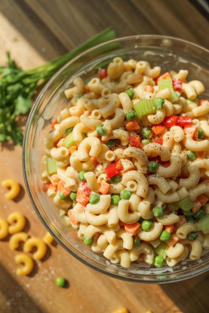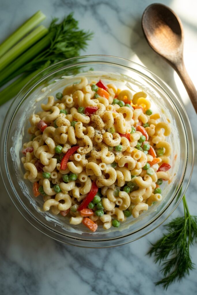 Here’s a little secret: timing your chilling is just as important as the ingredients. Pasta salad tastes best when it’s had time to rest in the fridge for at least an hour — this allows the flavors to marry and the mayo to thicken slightly, giving you that perfectly creamy texture. But don’t leave it too long! Over-chilling (think 24+ hours) can make the pasta absorb too much dressing and become mushy. So, aim for the sweet spot: chill, then stir, and serve fresh for max flavor and texture.