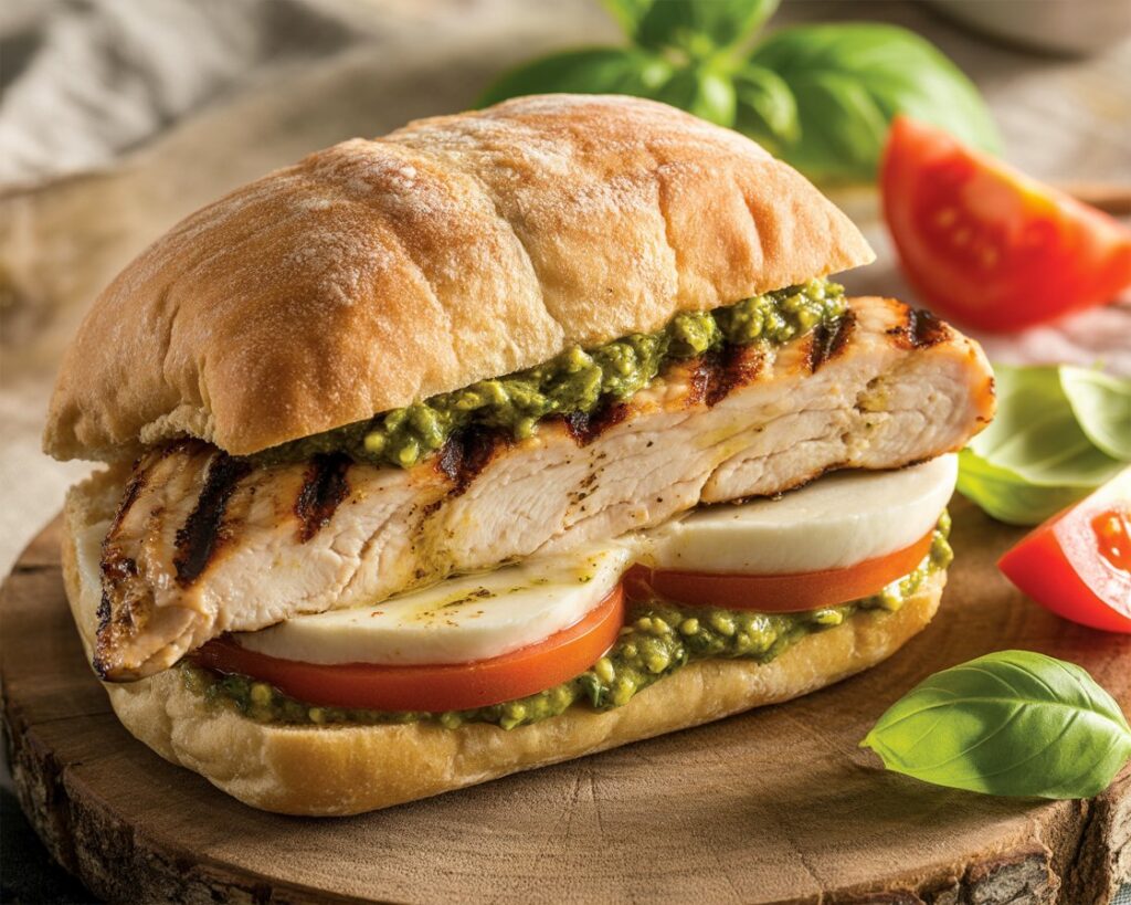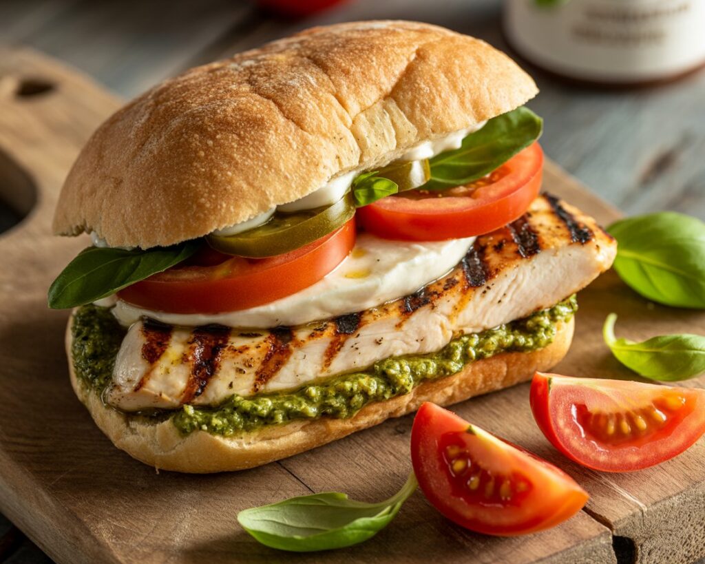 Pesto, with its sharp garlic and fresh basil notes, acts like a flavor conductor. It weaves through the sandwich, lifting the mild creaminess of mozzarella and enhancing the smoky char of grilled chicken. The bread adds texture—whether you go with rustic ciabatta or sourdough, the crunch balances out the softness of the other fillings.