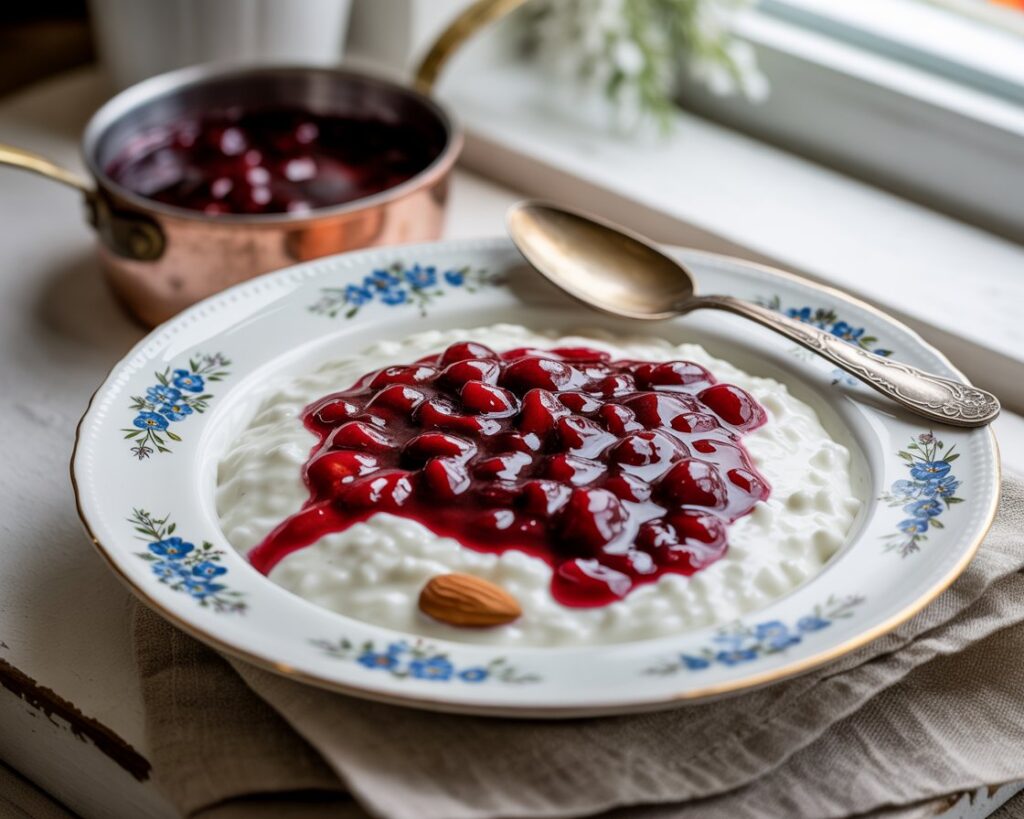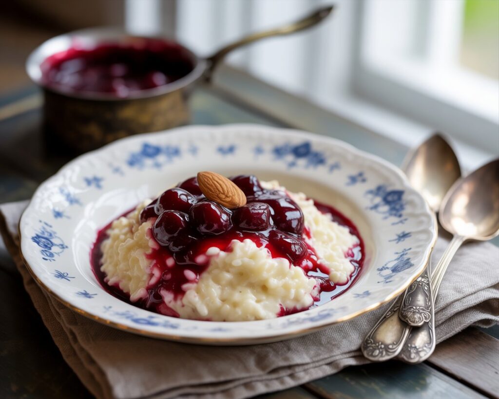 To call Risalamande “rice pudding” is like calling champagne “fizzy wine.” While they share a common base, Risalamande is elevated with a few essential touches: finely chopped almonds for texture, vanilla for warmth, and whipped cream for that signature fluff. Most importantly, it’s always served chilled, with a generous helping of warm cherry sauce poured over the top—creating a luxurious contrast of flavor and temperature.