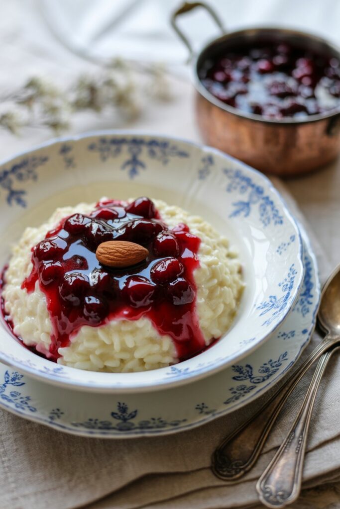 For those avoiding dairy, Risalamande can be just as delicious with plant-based alternatives. Swap the heavy cream for coconut cream and use almond or oat milk in place of regular milk. These substitutions keep the dessert rich and creamy without sacrificing flavor, making it accessible for vegans and those with lactose intolerance. The natural sweetness of coconut cream pairs beautifully with the almonds and cherry sauce, creating a satisfying dairy-free holiday treat.