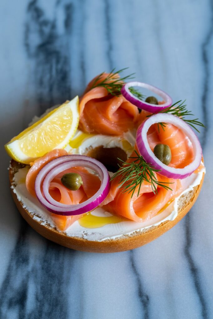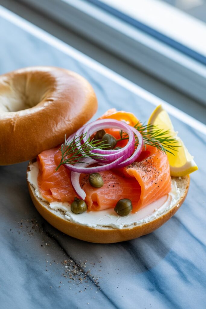 To get that golden, crispy exterior, make sure to toast your bagel until it’s a light golden brown—not too dark, but crisp enough to offer some crunch. A well-toasted bagel will also provide the perfect contrast to the creamy texture of the cream cheese and the richness of the smoked salmon. If you over-toast the bagel, it might become too hard and difficult to bite into, which could spoil the overall experience.