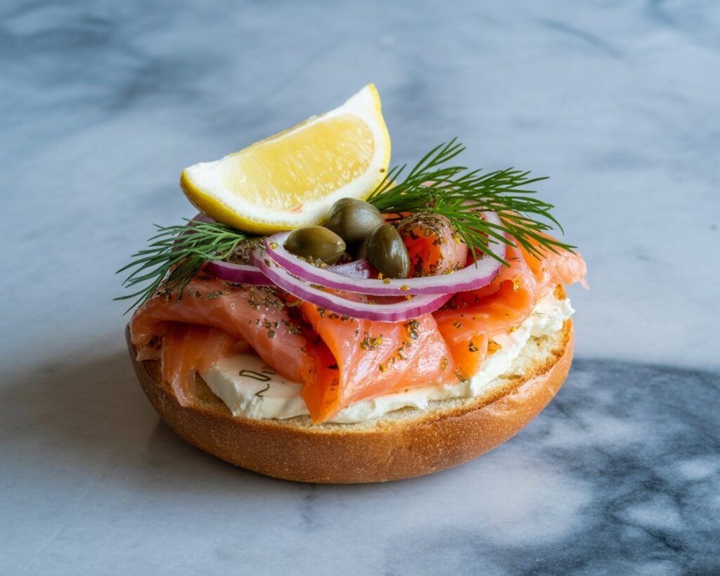 The classic smoked salmon bagel usually includes cream cheese, capers, and red onion—and for good reason. Each ingredient complements the rich, smoky flavor of the salmon while offering a balance of textures and tastes.