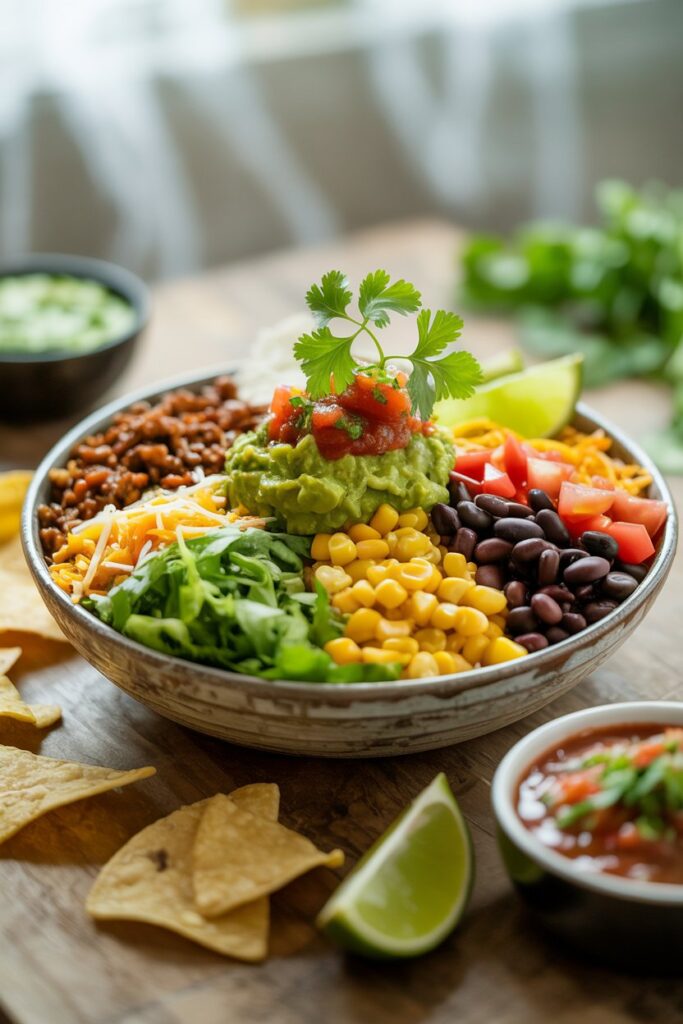 - Play with Texture: Layering textures—like a creamy guacamole, crunchy tortilla strips, and soft rice—will give your taco bowl more depth and make it more photogenic.