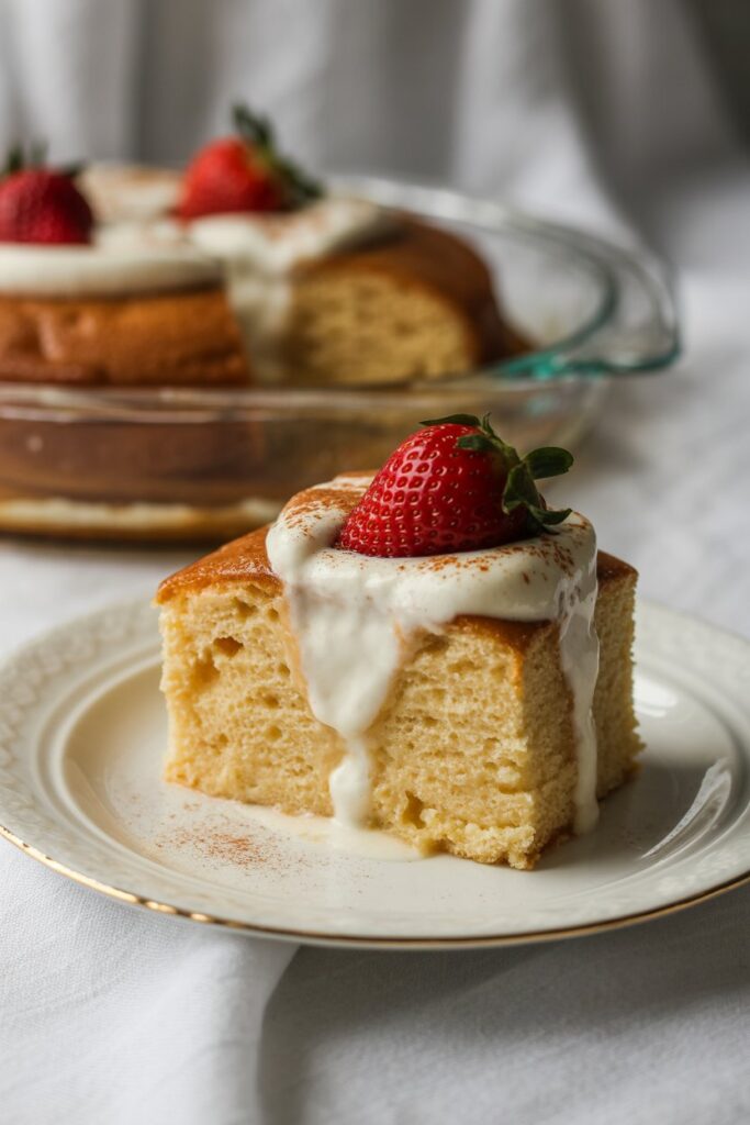 • Strawberry Tres Leches: Add fresh strawberry puree in the milk soak or top with sliced strawberries.