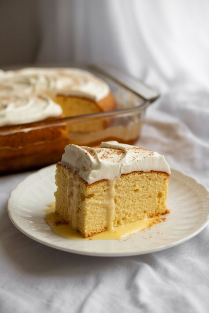 Using all three milks is not just tradition—it’s science. Each milk plays a crucial role in creating the perfect moist sponge cake. Evaporated milk prevents the cake from becoming overly sweet or heavy, while sweetened condensed milk adds the essential sweetness and syrupy texture. Whole milk or cream helps lighten the mixture and improves absorption, ensuring the milk soak penetrates evenly without sogginess. This balance is what makes the cake uniquely luscious and keeps it from collapsing under too much moisture.
