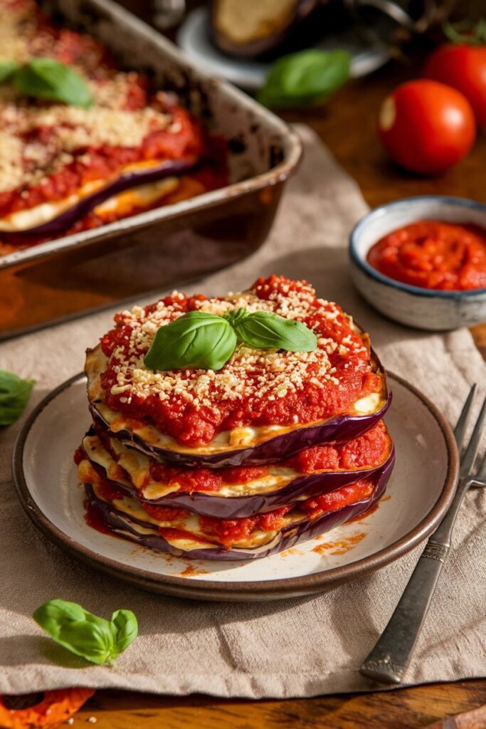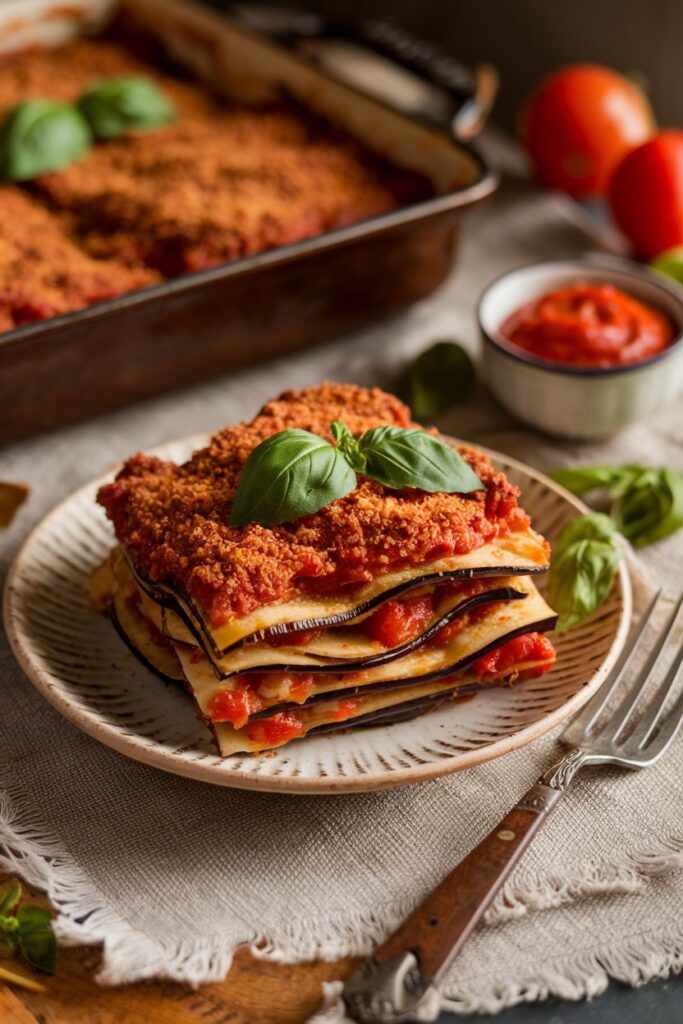 Vegan Eggplant Parmesan is a reimagining of the classic, not merely a plant-based version. What makes it stand out is how it takes everything we love about the original and adds a fresh twist. The dish is all about showcasing the rich flavor of eggplant while embracing vegan ingredients that stand on their own, rather than trying to replicate dairy-based textures. It’s a beautiful combination of bold flavors, satisfying textures, and a comfort-food experience that’s just as good, if not better, than the original. This isn’t just about making a “vegan version”; it’s about creating something that feels completely new yet familiar.
