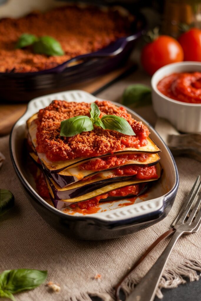 What makes this dish unforgettable isn’t imitation—it’s the way every element adds something unique. Nutritional yeast delivers a cheesy, nutty flavor that enhances every layer without dairy. Vegan cheese melts beautifully and gives that satisfying stretch we all crave. Panko breadcrumbs bring the crunch that makes each bite deeply satisfying and texturally balanced. The marinara sauce adds tangy brightness and ties the whole dish together with bold, familiar Italian flavor. Each ingredient is chosen with intention—not to copy, but to elevate.